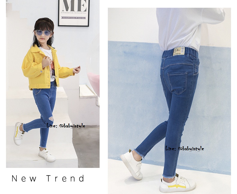 เด็กโต-กางเกงยีนส์เดนิม(ผ้านิ่ม) ขายาวเดฟแต่งขาดๆ เซอร์ๆ เอวยางยืด มีกระเป๋าหลัง งานสวยเก๋