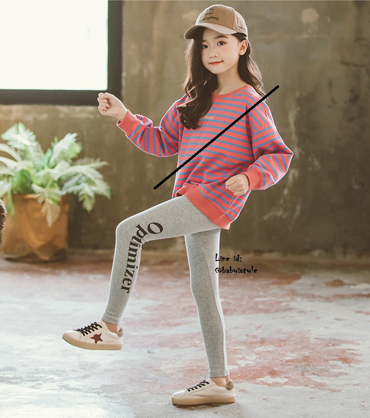 เด็กโต-เลกกิ้งขายาวสีเทา สกรีนอักษรOptimizer เอวยางยืด ผ้ายืดหยุ่นได้ดี สวยเก๋น่ารัก
