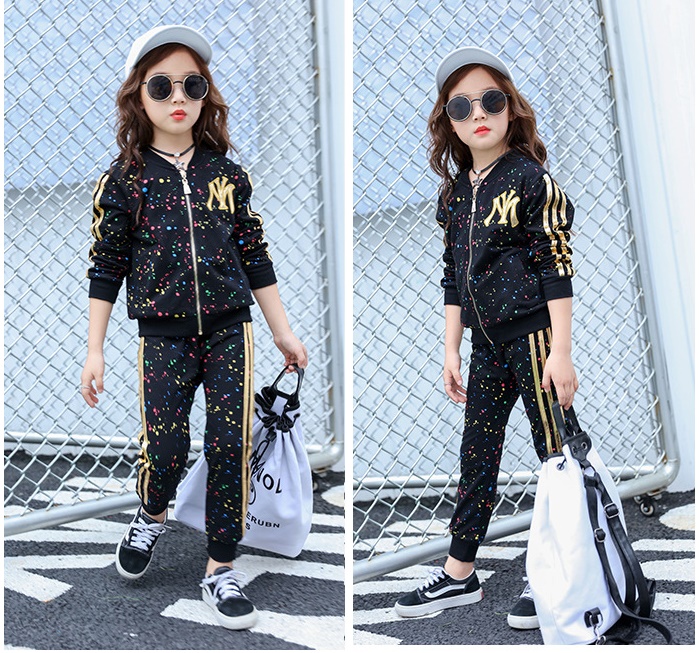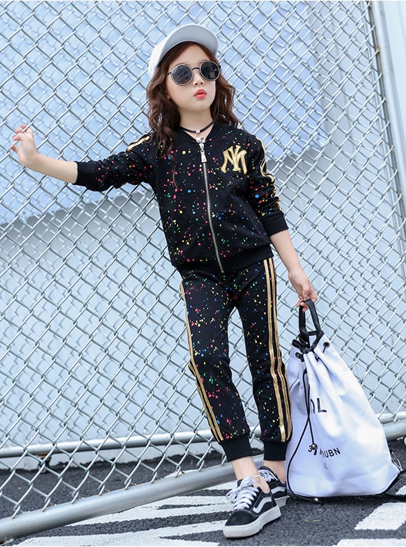 เด็กโต-ชุด2 ชิ้นเสื้อแขนยาวจั๊มพ์สีดำ ซิปหน้า(หัวซิปรูปดาว) มีกระเป๋าข้าง+กางเกงขายาวจั๊มพ์สีดำ แต่งเถบข้าง เอวยางยืด งานสวยเท่ห์ค่ะ ไซส์ 130/140/150/160