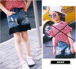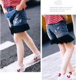 *Sales เด็กโต-กางเกงยีนส์ขาสั้นแต่งขาดๆ ชายแต่งผ้าชีฟองสีดำอัดพลีท ไซส์ 150 รหัส KKK706