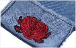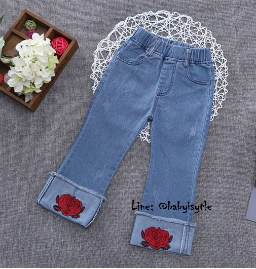 เด็กโต-กางเกงยีนส์ 4 ส่วนพับเบิ้ลปักดอกกุหลาบแดง