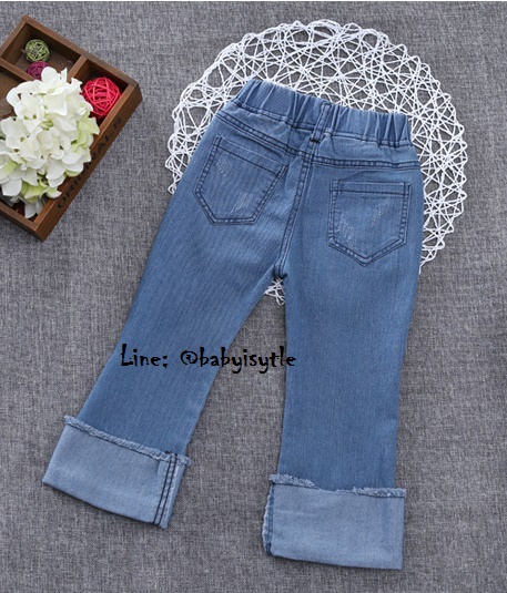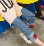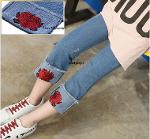 *Sales เด็กโต-กางเกงยีนส์ 4 ส่วนพับเบิ้ลปักดอกกุหลาบแดง ไซส์ 150 รหัส KKK709