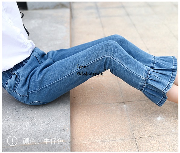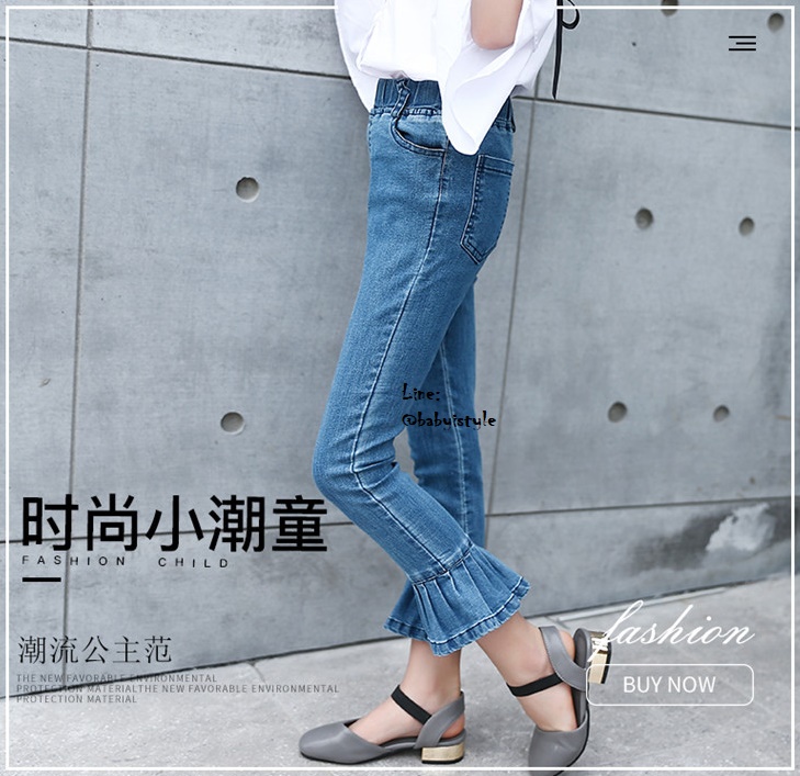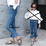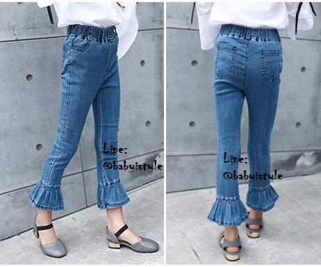 เด็กโต-กางเกงยีนส์สกินนี่ขาเดฟปลายกระดิ่งทวิส ขอบเอวยางยืด มีกระเป๋าหลัง งานสวยน่ารัก ไซส์ 140/150/160