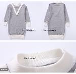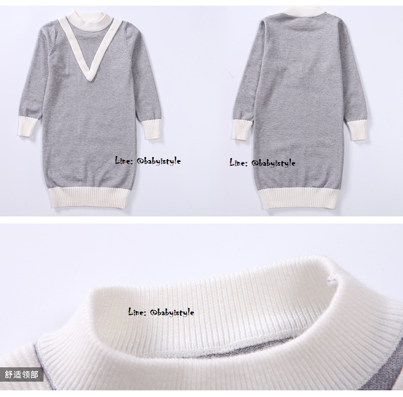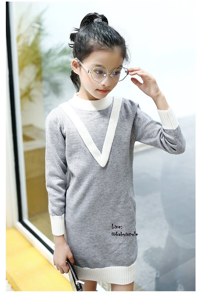 เด็กโต-เดรสแขนยาวไหมพรมทรงสอบสีเทา แต่งตัวV ผ้ายืดหยุ่นได้ ผ้าดีงานสวย