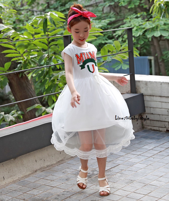 *Salesเด็กโต-เดรสยาวพรีเมื่ยมสีขาวแขนล้ำสกรีน MIAMIต่อกระโปรงผ้ามุ้งสีขาว ไซส์ 150 รหัส KKK930