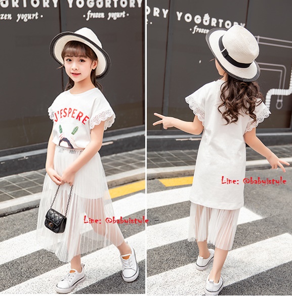 เด็กโต-ชุด2ชิ้นเดรสแขนกุดJ'ESPERE สีขาวระบายลูกไม้