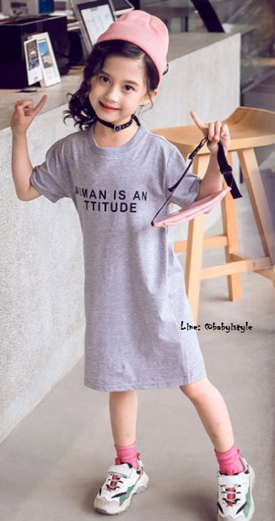 *Salesเด็กโต-เดรสแขนสั้นสีเทาสกรีนAUMAN IS AN ATTITUDEหลังเว้าหยดน้ำบิดเกรียวไซส์150/160รหัสKKL069A