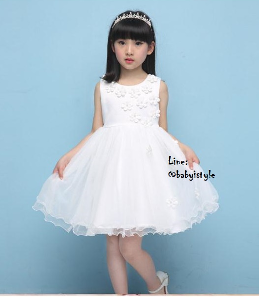 เด็กโต-เดรสออกงานแขนกุดสีขาว มีริบบิ้นผูก มีซิปหลัง ราคา 590 พิเศษ 410 บาท*ไม่รวมค่าส่ง