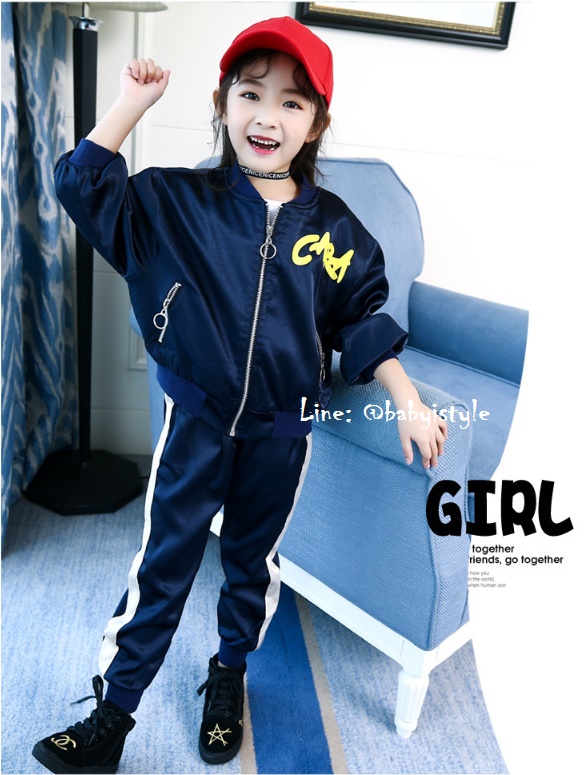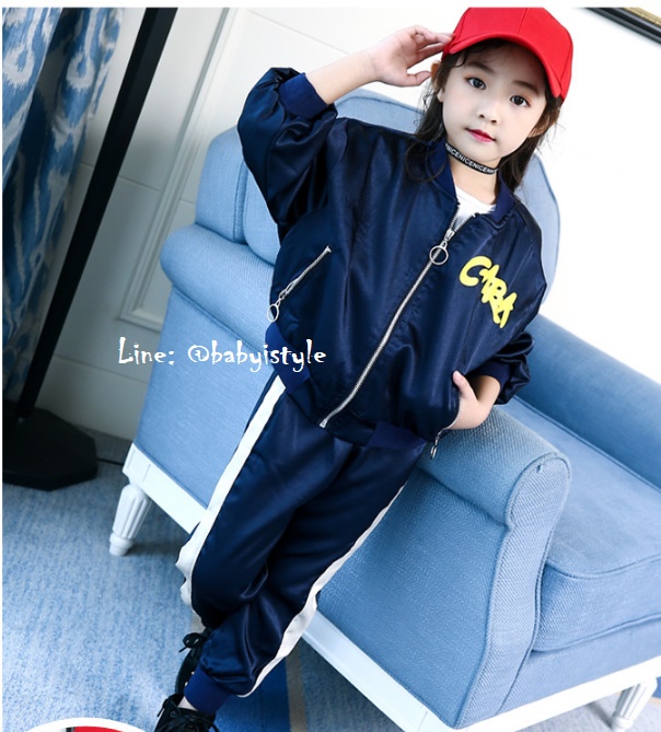 เด็กโต-ชุด2ชิ้นเสื้อแจ็คเก็ตแขนยาวจั๊มพ์สีกรมท่าซิปหน้า มีกระเป๋าข้างซิป มีซับใน (ไม่มีเสื้อตัวใน)หลังสกรีนLOVEME