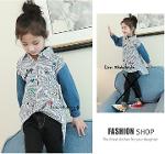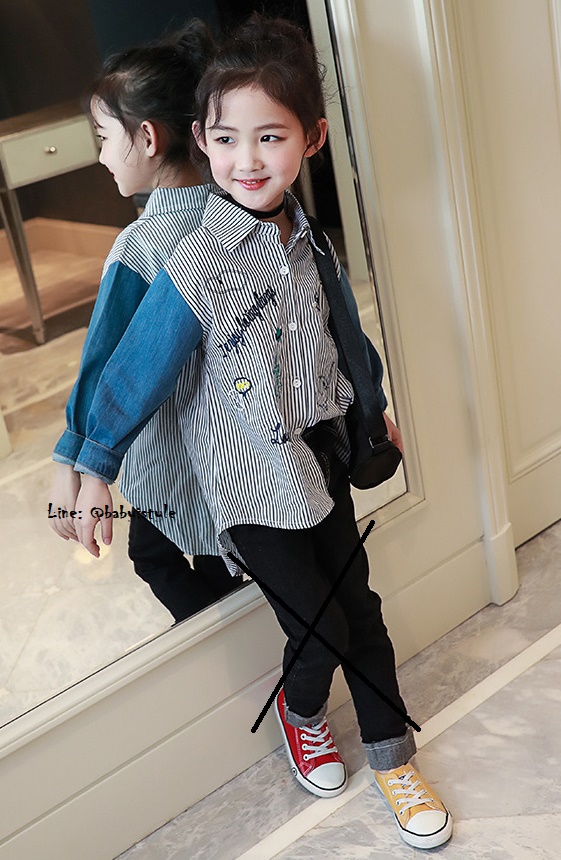 *Salesเด็กโต-เสื้อเชิ้ตสีขาวริ้วเทาดำต่อแขนยาวผ้ายีนส์ปักลวดลาย หน้าสั้นหลังยาวไซส์150/160รหัสKKK917