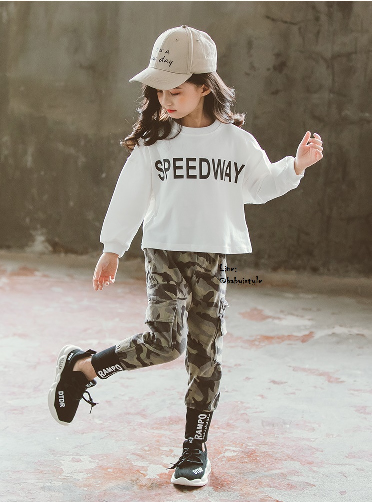 เด็กโต-ชุด2 ชิ้นเสื้อแขนยาวจั๊มพ์สีขาวSPEEDWAY หลังสกรีนVOGEUชายปล่อย+กางเกงขายาวจั๊มพ์ลายพรางสีเขียว มีกระเป๋าข้าง เอวยางยืด งานสวยเท่ห์ค่ะ ไซส์140/150/160