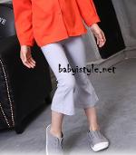 เด็กโต-กางเกงเลกกิ้งขากระดิ่ง5ส่วนสีเทา มีกระเป๋าหลัง