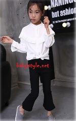 เด็กโต-กางเกงเลกกิ้งขากระดิ่ง5ส่วนสีดำ มีกระเป๋าหลัง