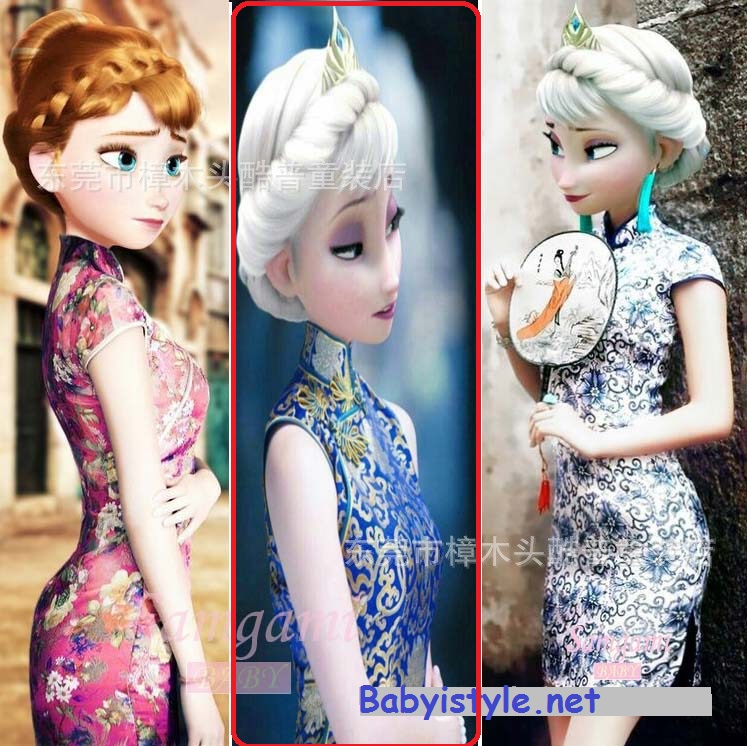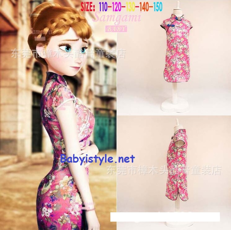 ชุดกี่เพ้าเด็กแขนกุด FROZEN ELSA สีชมพู มีซิปด้านหลัง สวมใส่ง่าย
