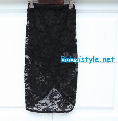 กระโปรงผ้าลูกไม้สีดำ ผ่าเว้ากลาง ซับในด้านในจะสั้นกว่าค่ะ
