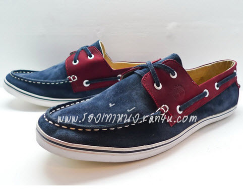C048 รองเท้า timberland boat shoes หนังสีน้ำเงินแดง