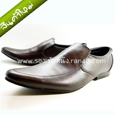 C073 รองเท้าคัทชู หนังเทียม น้ำตาลเข้ม