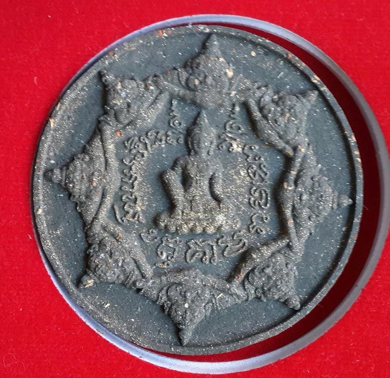 พระสวยไม่ได้ใช้เลย จมูกโด่งไม่มียุบ เหรียญมหาปราบ เนื้อตะกั่ว ขนาด 4 ซ.ม. พร้อมกล่องเดิม ราควัด 4,000 บาท ผมเช่ามาเองจากวัดและนำไปให้พระอาจารย์โชติท่านจารเพิ่มให้ ข้อมูลจากศิษย์ใกล้ชิดบอกว่าเป็นเนื้อที่มีมวลสารตะกรุดเก่า, เหรียญเก่า, และผสมหัวตะกั่วลูกปืน
